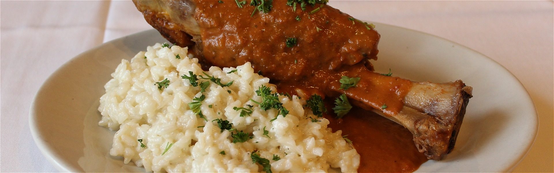 *braised lamb shank slow braised New Zealand lamb shank, puree of mirepoix, mushroom risotto $26